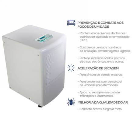 Desumidificador ideal para ambientes de até 300m³ ou até 100m²
